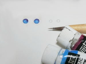 だったらいっそのことドールアイをつくってしまえというわけです。もちろんグラスアイは簡単には作れないけど、今はUVレジンというとっても便利なものがある。