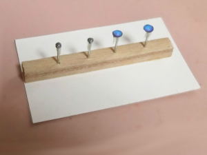 2 これを切り抜いて釘の台に両面テープで固定、UV