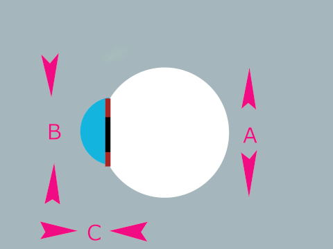 2 表側からアイホールを見て、その開き具合から虹彩の直径が決まる。(B)