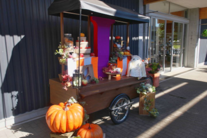 今はちょうど秋バラのシーズン、また園内のあちこちにハロウィンの飾り付けがしてあって、平日なのにけっこう混雑してました。