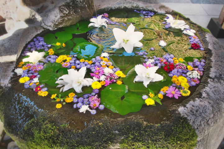 手水舎がきれいな花で彩られていて、ちょっと感激でした。