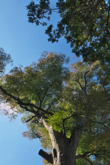 こちらは小田原市指定天然記念物の「三島神社のケヤキ」です。小田原市内で最も巨大な樹木だそうで、大きすぎてとてもカメラにおさまらない。