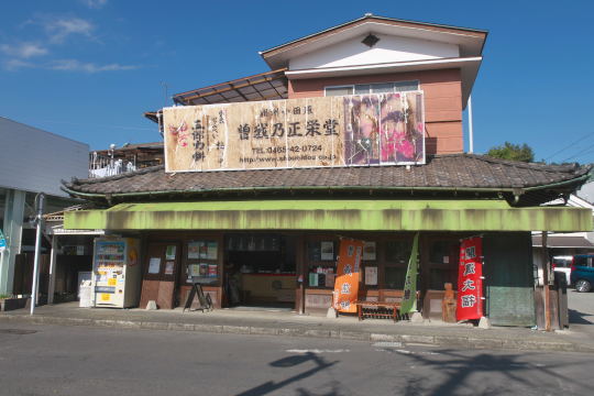 こちらは駅前にある曽我乃正栄堂さんです。100年以上この地で和菓子屋を営んできた老舗で「曽我せんべい」と「五郎力餅」は神奈川の銘菓として知られています。