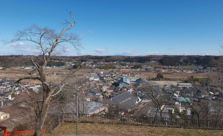 ここからの景色は素晴らしい。四方に遮るものはなく下野の国が一望できる。ただこの日は風がものすごく強くて寒かった。
