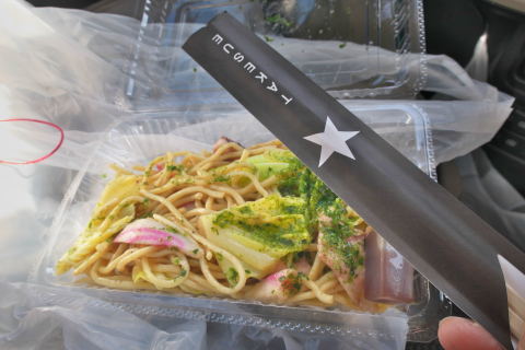 我家は「初代竹末食堂の焼きそば復活」という看板に惹かれて、お土産に1パック買って帰りました。少し酸味の効いたタレが独特で美味しかったです。
