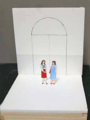 右は壁の右端を2cmほど手前に出し、主人公を心持ち左に移動し斜めに構えさせる。こうすることで奥行きが感じられるようになる。ちょうど
