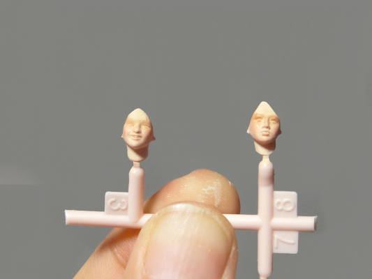 全体をMr.カラー No.111 キャラクターフレッシュで着色の後Mr.カラーGX No.113 つや消しクリアーを吹き付ける。このあと画像中段にある3種類の綿棒で少しずつ