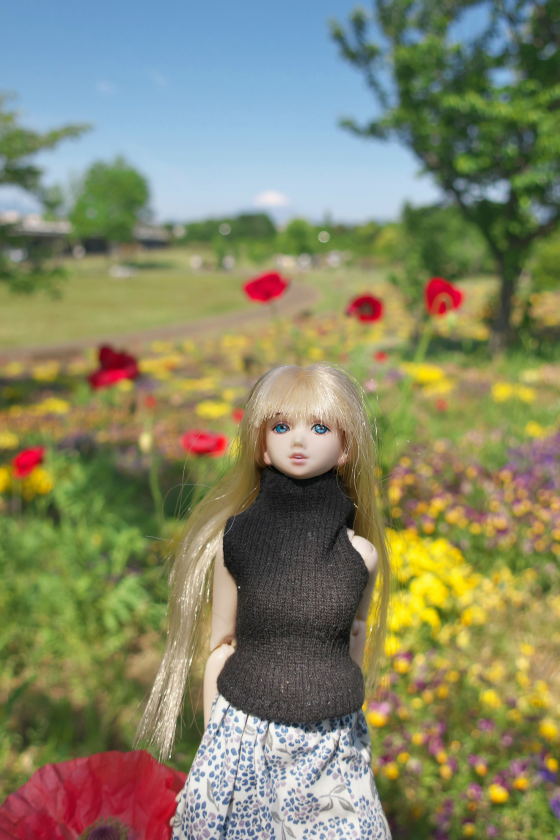 てお花いっぱいの景色の中でユノアクルス・ライトをモデルにして撮影してみました。