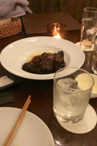 いろいろオーダーしたのだけど、お料理では牛ネックの赤ワイン煮が抜群に美味しかった。お酒の方はアイルランドのクロナキルティというスコッチ、初めて飲んだのだけどとっても