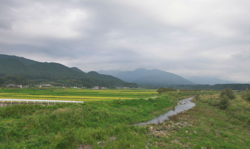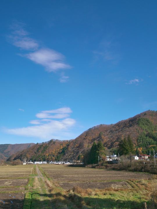 このあたりは紅葉の名所でも何でもないけど、ごくごく普通の農村の風景がひろがり、それがまた美しい。