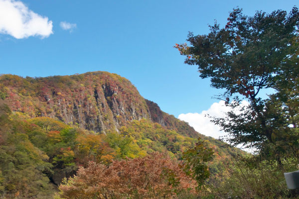 最初は快晴に近かったけど、少しずつ紅葉した山に雲がかかり始めた。
