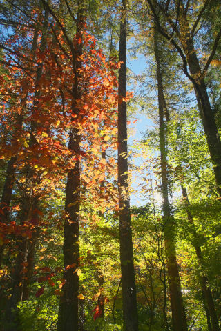 落ちてしまったところも目立つけど、こういう林のなかではきれいに紅葉していました。
