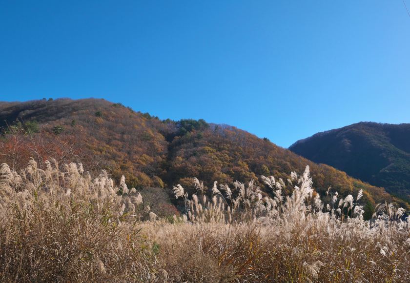中三依には美しい川が何本か流れていて、その谷筋にはこういうきれいなススキの原がひろがっています。