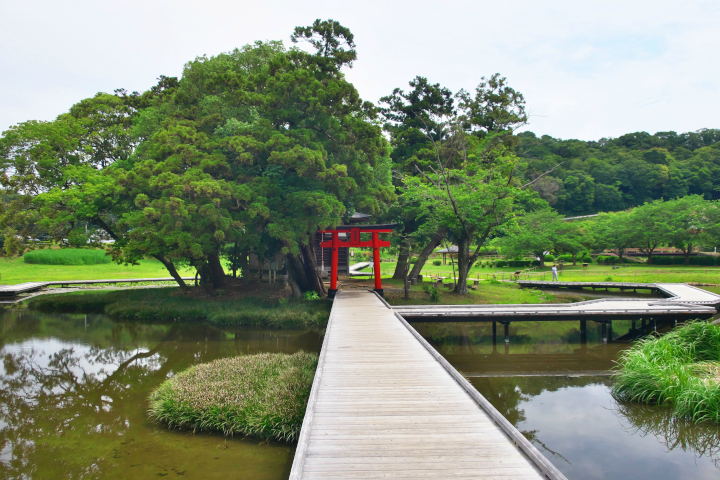 ここは水源地になっていてたくさんの湧水があふれ出し、その中央にある島にはその名の通り「厳島神社」があります。まわりにはクレソン