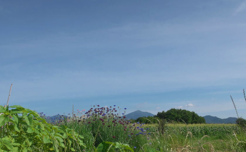 ここからはトウモロコシ畑の向こうに富士山が見える。