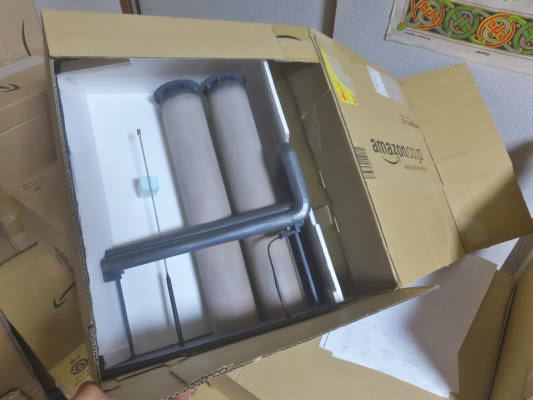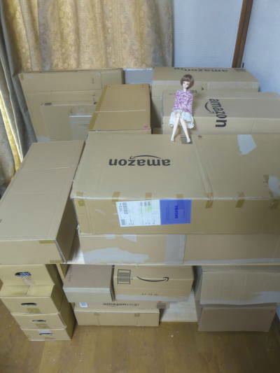 昨日最終的な搬入物の点検と補修終わったので、ふたたびリビングに軽自動車の荷台と同じサイズに積み上げました。多分これで大丈夫です。