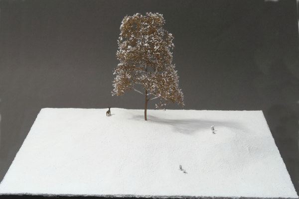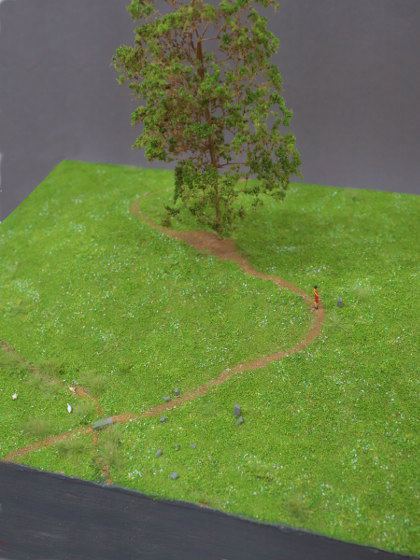 1/3という大きなスケールでは、人形とそのまわりの僅かな空間しか再現できません。だから制作したものから外にひろがってゆく空間をイメージできるような作品に