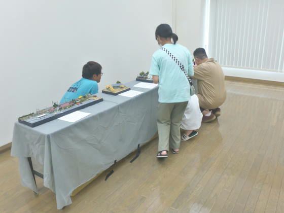準備に2年、どうせやるならと背景にこだわってみた。夏休みの時期に開催するので、一緒に子供たちの喜びそうなジオラマも置く、するとジオラマのまわりには結構な