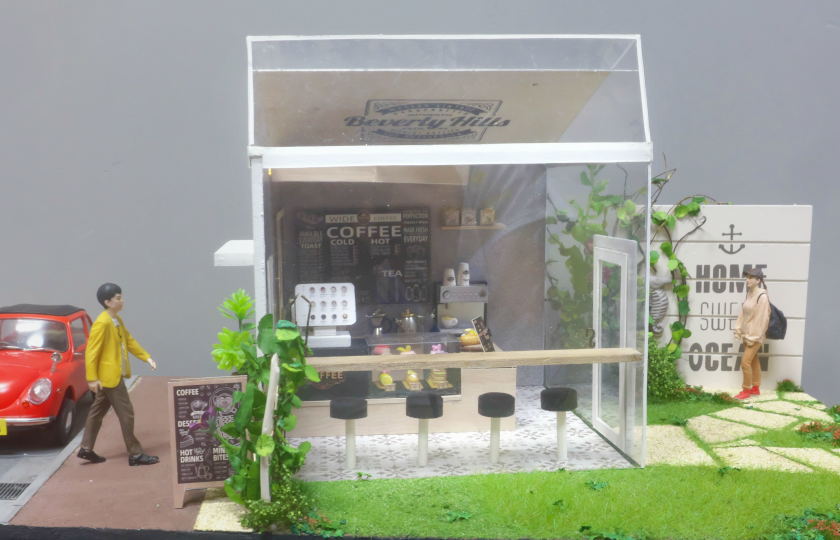カフェは中国製のドールハウスキットを流用しています。