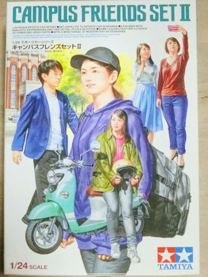 こちらは買い置きしてあったタミヤの「キャンパスフレンズ2」というプラモ。最近の若者の特徴を良く捉えたとっても良い製品で一目惚れして買ったものです。