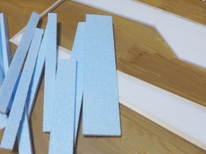 まずは発泡スチロールやスタイロフォームなどを適当にカットし、荒めの金属やすりで磨きます。