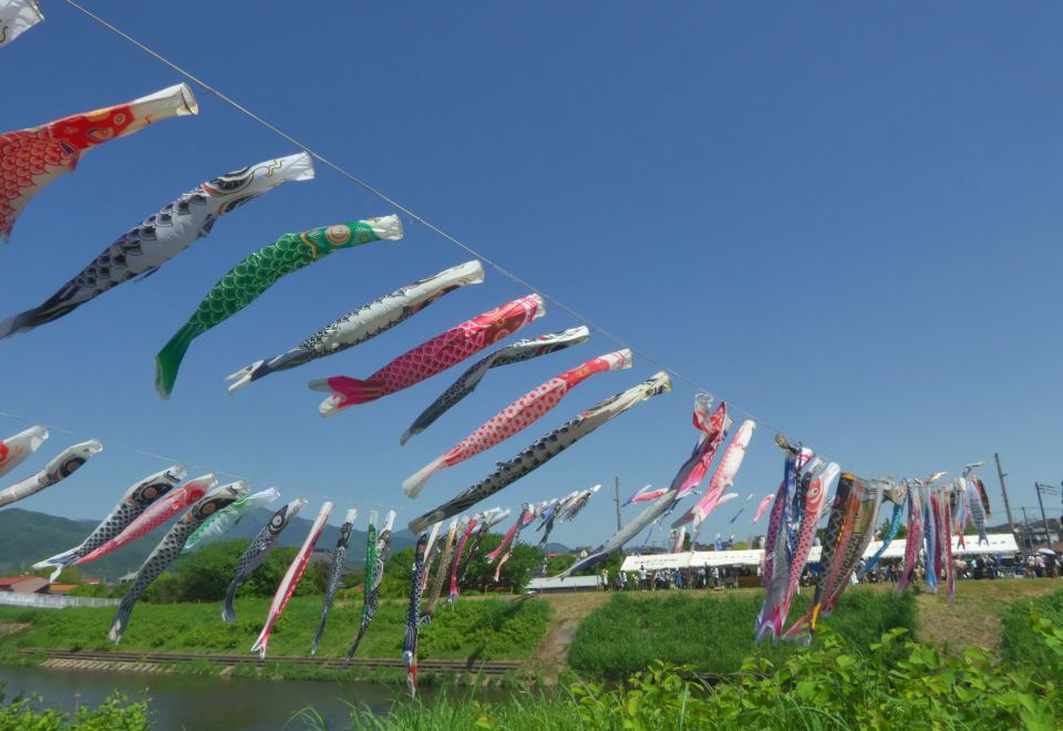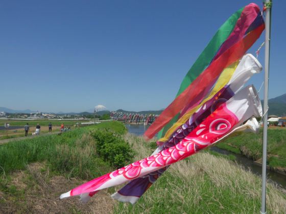 毎年開かれている「鯉のぼり祭」です。遠くに富士山が見えて景色が良い。