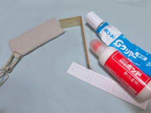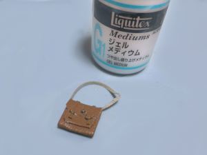 家具は木の板に木目を印刷した紙を張り付ける必要があるのだけど、自分の場合には、まずは木工ボンドを木の板の上に少量おき、更に水を一滴たらして全体に伸ばします。