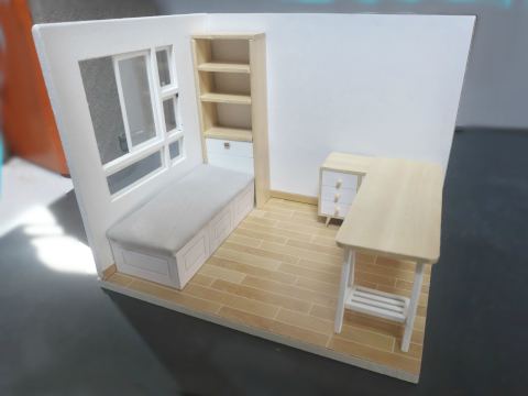 ベッド、机、本棚が完成したのでレイアウトしてみました。