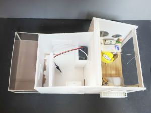 これがその中身です。 大きさは一辺が10cm程度なので、リアルな空間だと4畳半という感じかな。ここにベッドを含めた一部屋の内部が再現されます。