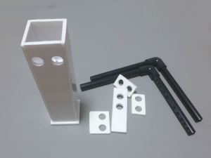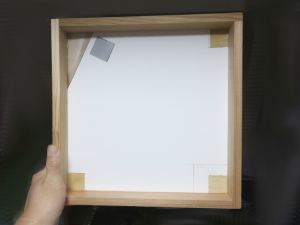 9 混合液が固まる前に、形を合わせたアクリル板を