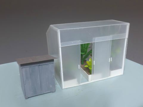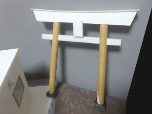 窓については一体成型でリアル感がないので、引き戸に改めています。 もともとリアルなジオラマをつくる目的でつくられた商品ではないので、スケール感のないところは