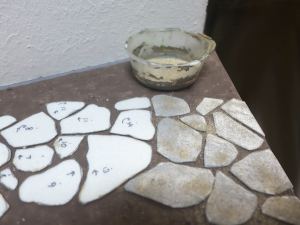 次の作業は植物表現です。背の低い植物から作るのが基本、だからまずは地衣類(苔)からです。