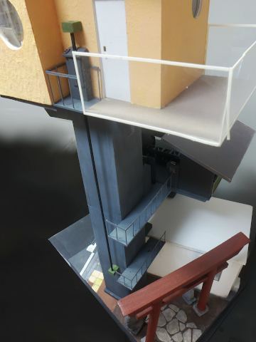 各階層への移動は支柱に据え付けられた簡易エレベーターを使う。