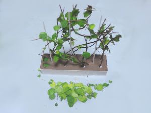 3巡目の作業では下にたれる苔のようなようなものを追加(20gで263円 TEMU)、更にツタのような植物を這わせます。(TEMU お値段はなんと2円)