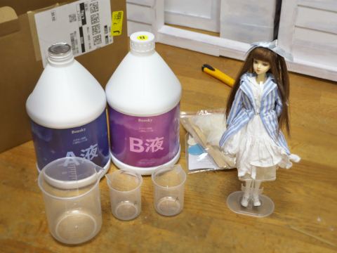 準備したクリアーレジンはA液、B液合計で約8Lという量、こんなに大量のレジンを使ったことなんか、これまでないです。