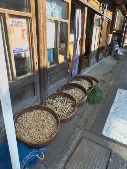 震生湖を訪れたら立ち寄りたいところとしては白笹稲荷神社と、お隣の落花生屋さんです。11月、地元で採れた落花生を天日干ししてから釜炒りするという、