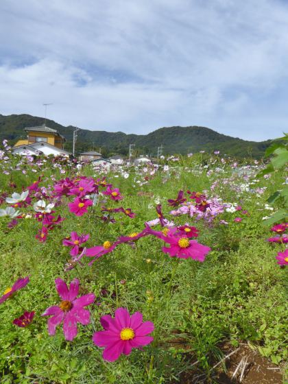 いつもだと秋はコスモスでいっぱいになる。でも今年はほんの少ししか咲いていませんでした。これも度重なる豪雨や台風の影響でコスモスの種や芽がすべて流されてしまったから