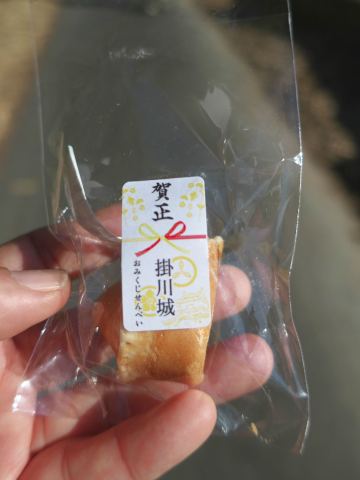 手持ちの食料は掛川城のお正月の入場記念にいただいた「おみくじせんべい」のみ。これをいただいて飢えをしのぎます。(運気が何だったかは秘密です)