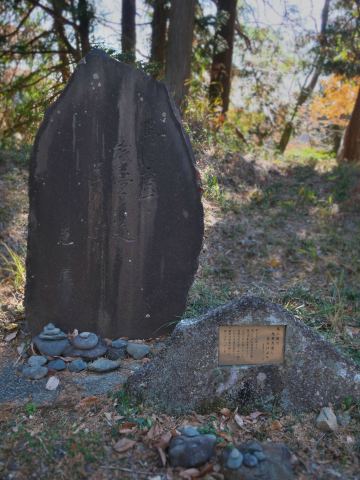 話は前後しますが、「おみくじせんべい」をいただいたあたりにこんなものがありました。こちらは「夜泣き石跡」という石碑です。
