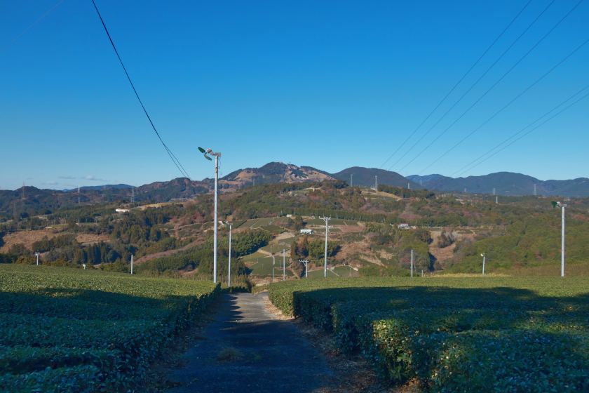 ほどなく峠というところで、どんとひろがる広大なお茶畑に出ました。ものすごく景色が良い。