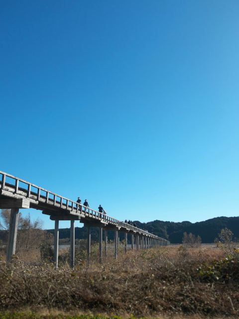 この橋は蓬莱橋といって、全長897.4m、世界一の長さを誇る木造歩道橋です。