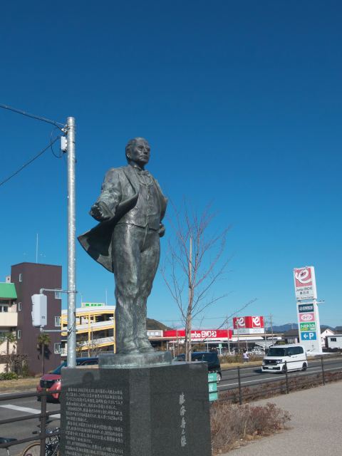 勝海舟の偉業を称えるため、蓬莱橋の入口には凛々しい彼の銅像がどんと立てられています。