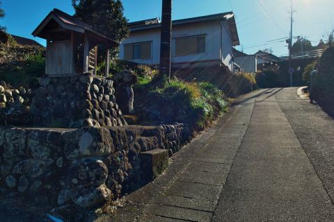 旧東海道沿いに点々とお茶畑が続き、ところどころにこういった石碑や馬頭観音、道祖神といったものが置かれています。