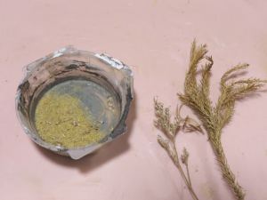 枯草表現に使用するのは3タイプ7種類、まずは枯草色のターフ、そして枯草色と茶色のファイバー、あとは手持ちのドライフラワー4種類です。