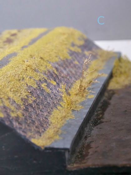 このとき土の部分には、木工ボンドが乾く前に「浴びっこサンド」を撒いておくと、ざらっとした質感が出ます。