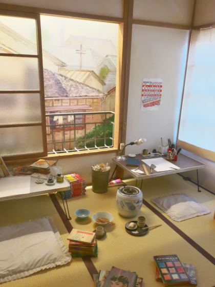 ちなみに窓の外の風景は描かれたもので、当時の2Fからの景色を再現したものです。