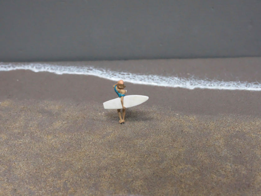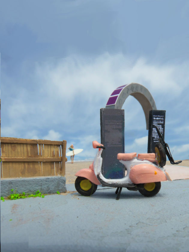 完成した作品はこちらです。海岸とバイク、主役のサーファーが一人という実にシンプルなジオラマです。