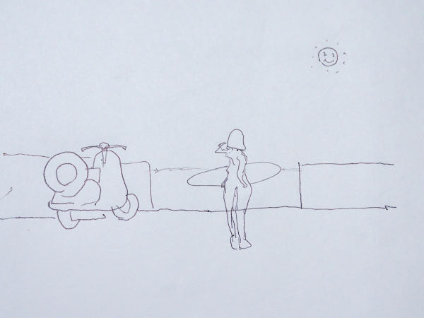 朝早くスクーターでやってきて、サーフボードを抱え、砂浜に降り立つ。ただこれだけなんだけど、実に湘南らしいと思う。