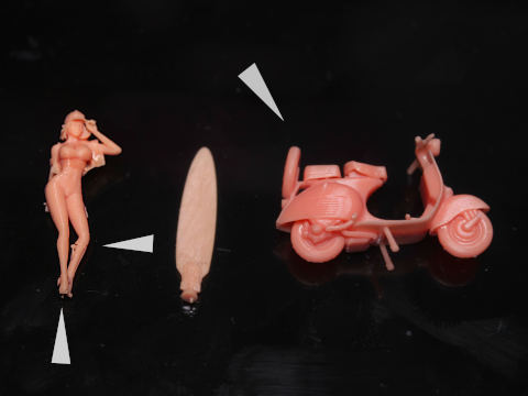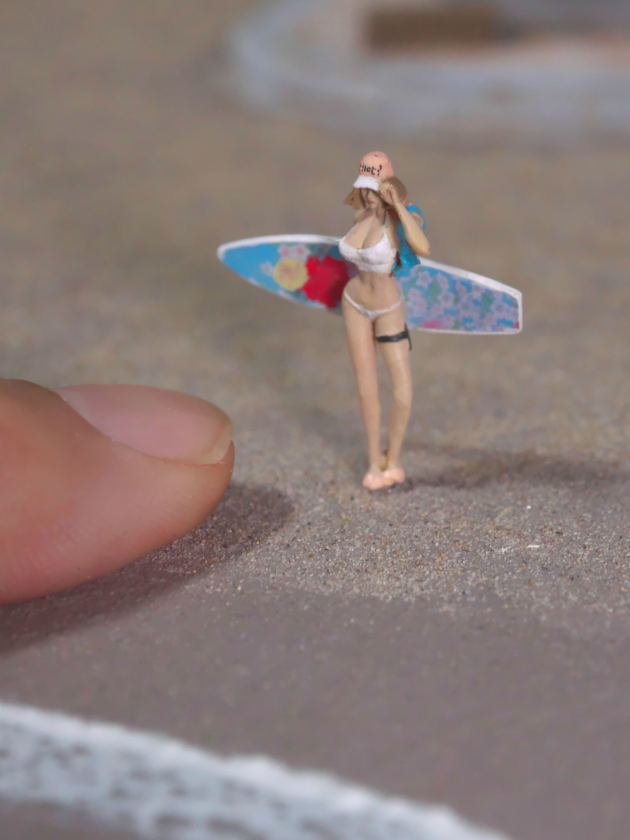 サーファーの彼女はTEMUで569円、スクーターの方はAliexpressで347円。身長は28mm、大きさからするとお高めの印象はありますが、3Dプリンターで制作されたものは