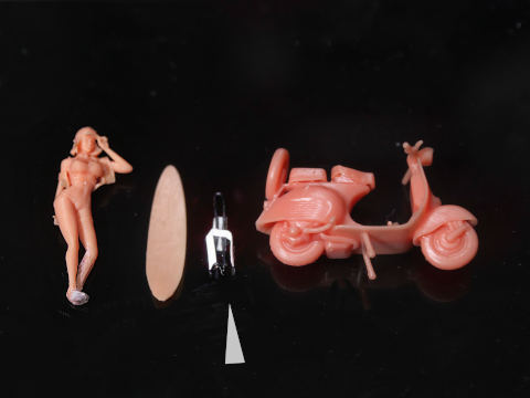 フィギュアの問題点としては左のふくらはぎにプリント不十分のところがあること、それからハイヒールを履いていることかな。砂浜でハイヒールはあり得ないし、スクーターに